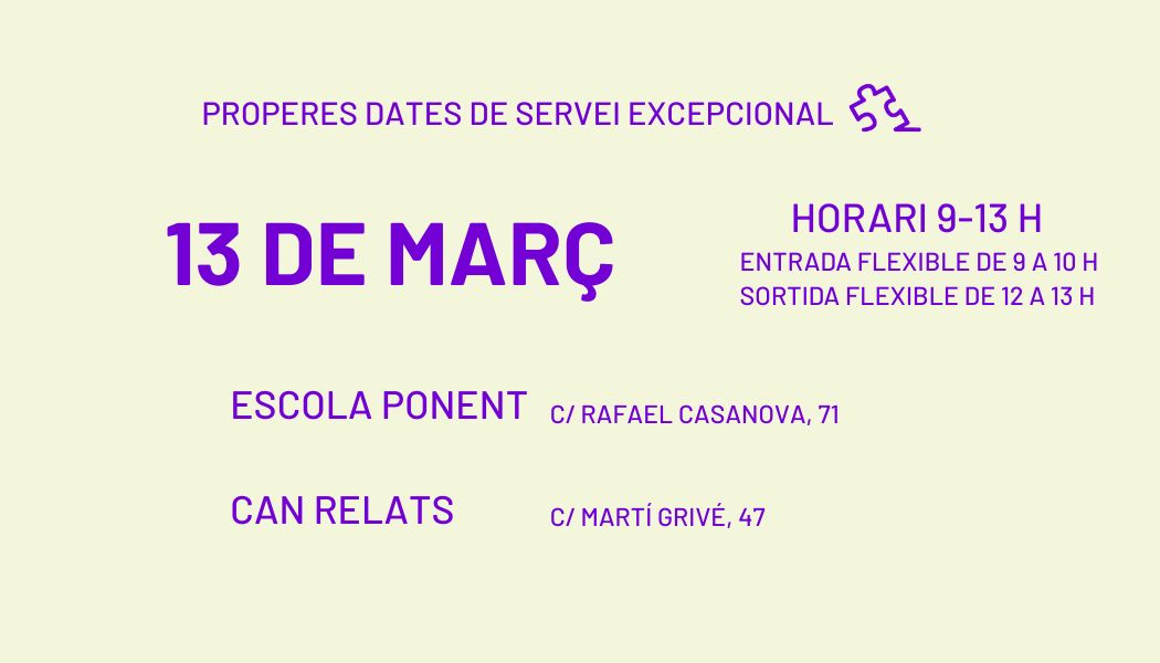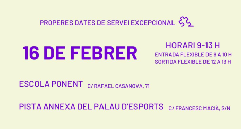 Dies de servei excepcional: En dates concretes de dies laborables no lectius escolars s’oferirà servei a altres equipaments de la ciutat.ç