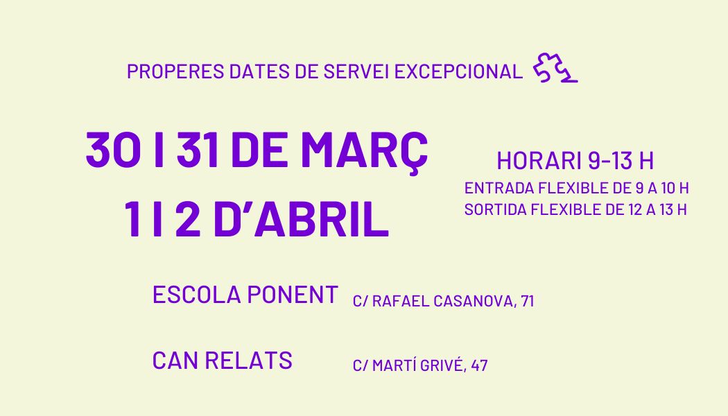 Dies de servei excepcional: En dates concretes de dies laborables no lectius escolars s’oferirà servei a altres equipaments de la ciutat.ç